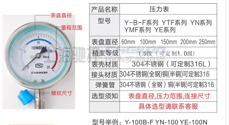 Y-60B/100B/150B全不銹鋼耐震壓力表