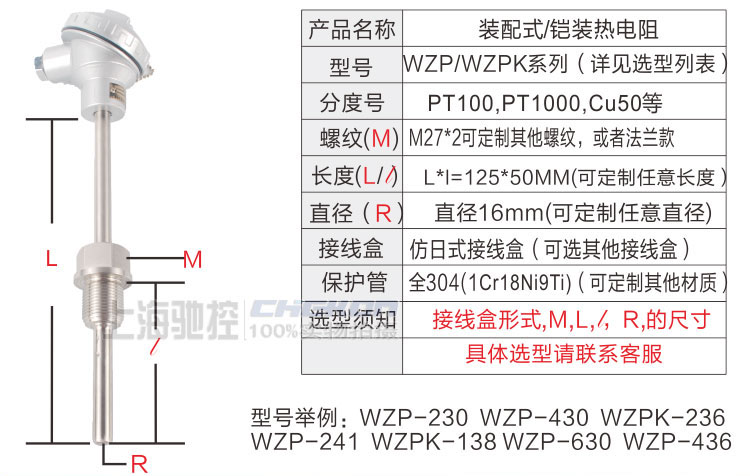 WZP 熱電阻 PT100 Cu50多種分度號(hào) 單支雙支均可定制